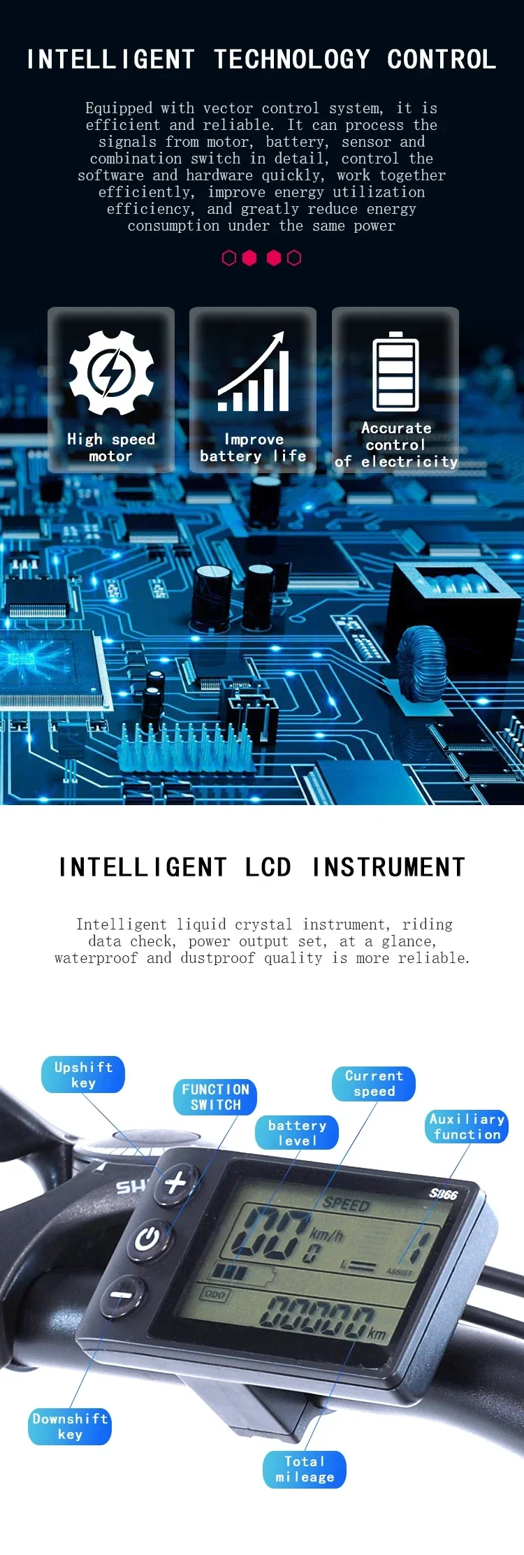 Electric Bicycle 750W Brushless Motor AKEZ 48V 13AH Lithium Battery 26 inch.