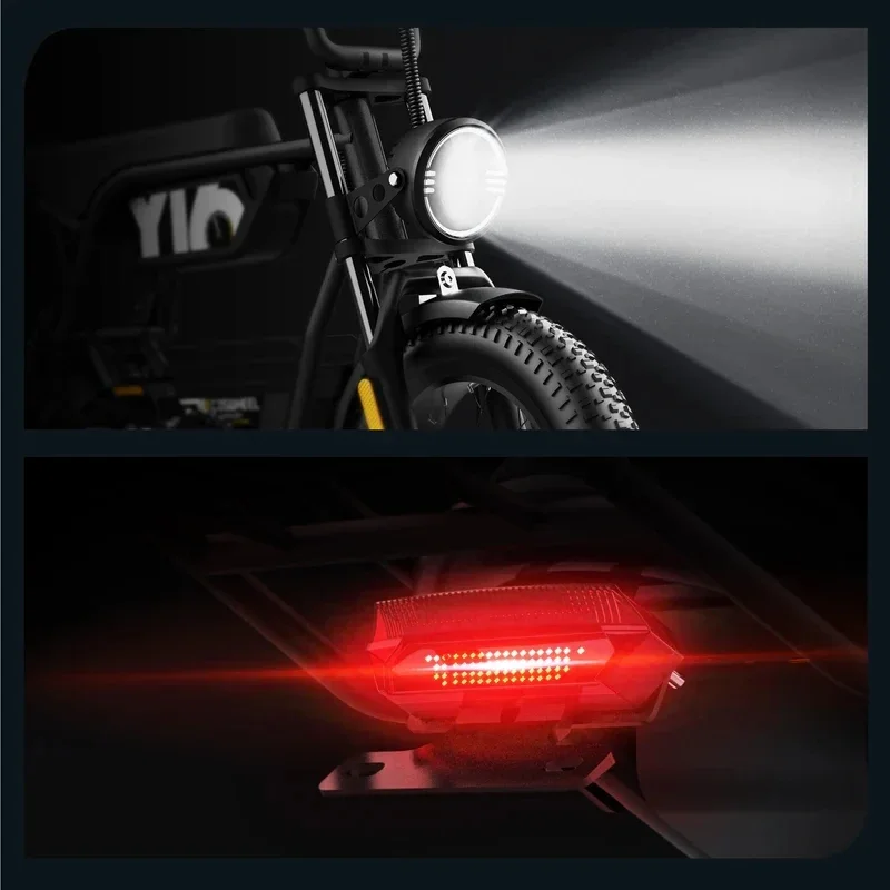 Equipped with high-quality front and rear lights to illuminate your way.