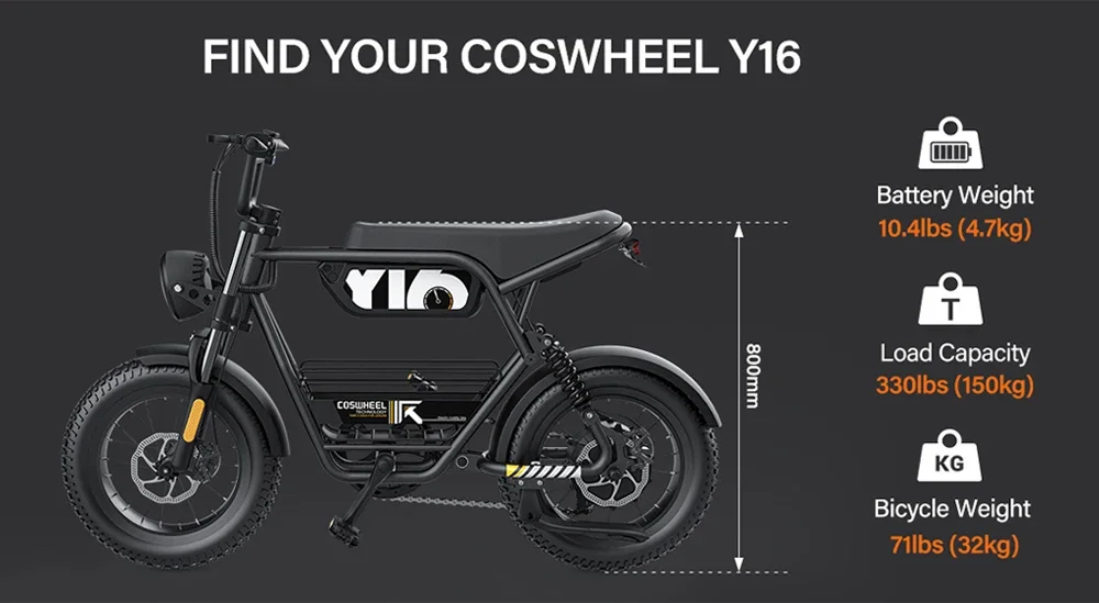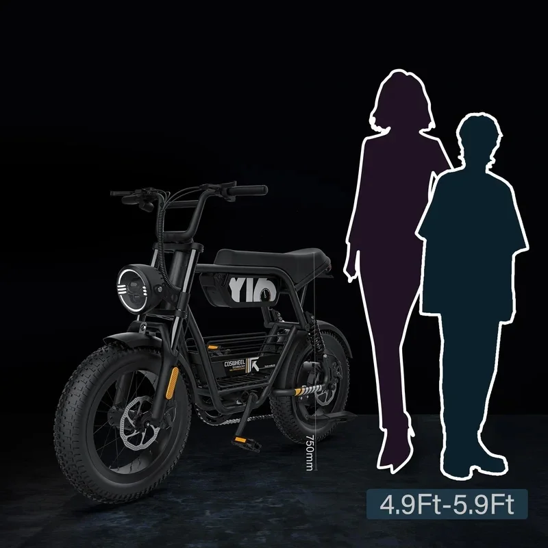 The Y16 seat is 29.53" (75cm) above the ground, suitable for people 4'11" - 5'11" (4.9ft-5.9ft). Therefore, the Y16 is very friendly to women and teenagers and can be a good travel tool for them.