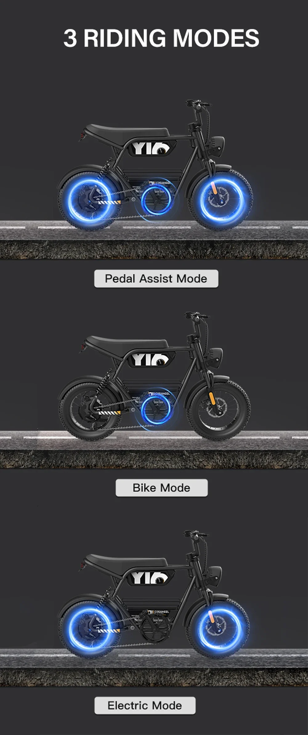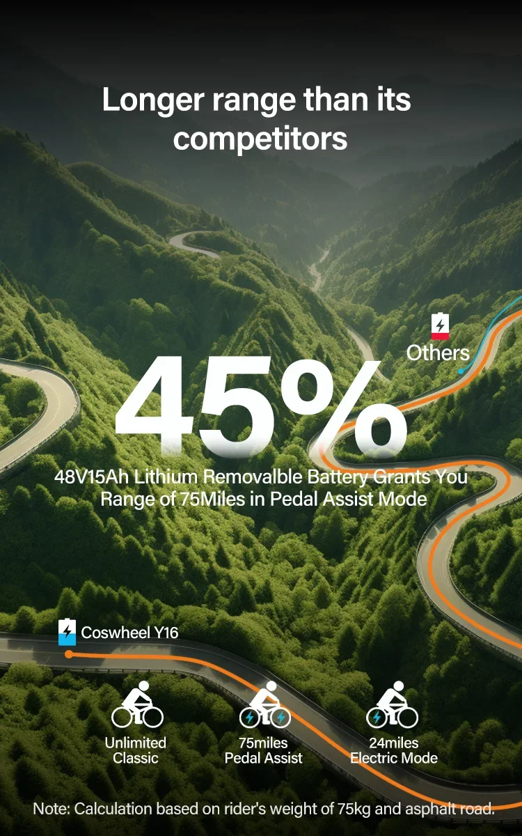 Electric Bicycle Coswheel Y16 1000W Motor 48V 15AH Battery